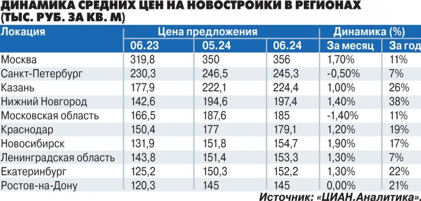 Средняя стоимость первичной недвижимости на 18 крупнейших региональных рынках России (16 городов-миллионников, Московская и Ленинградская области) за май выросла на 0,4%, достигнув к началу июня 168,7 тыс. руб. за кв. м, подсчитал руководитель «ЦИАН.Аналитики» Алексей Попов. По его словам, несмотря на увеличение среднего срока продаж застройщики не рискуют заметно индексировать цены.